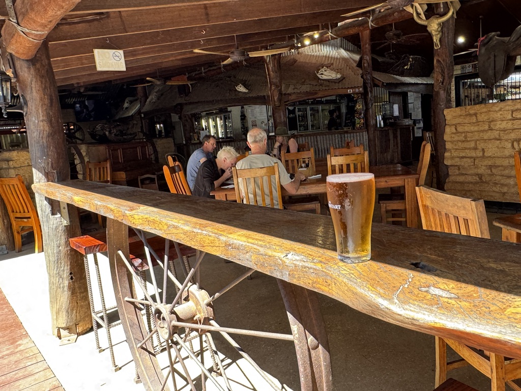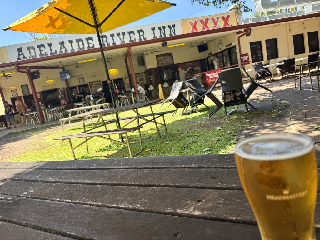 Enjoying my first pint of VB on tap for quite a while at the historic Adelaide River hotel.