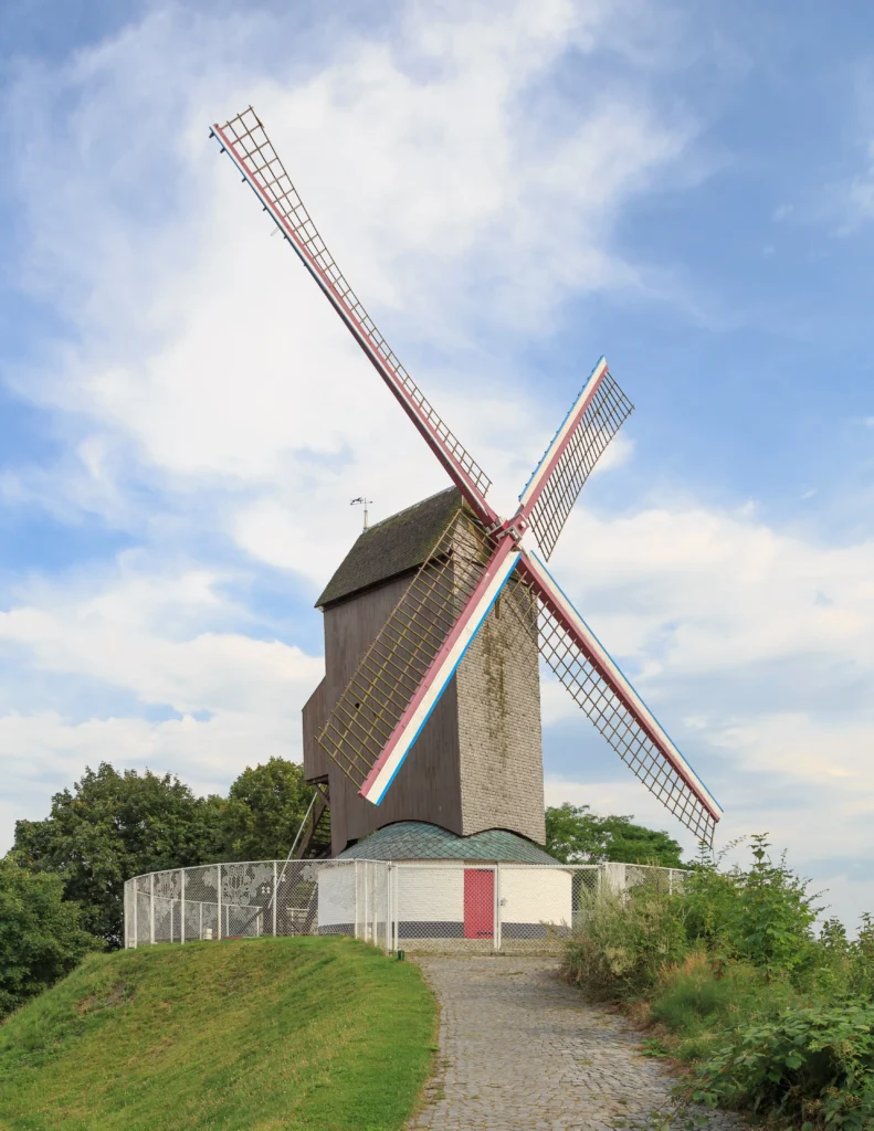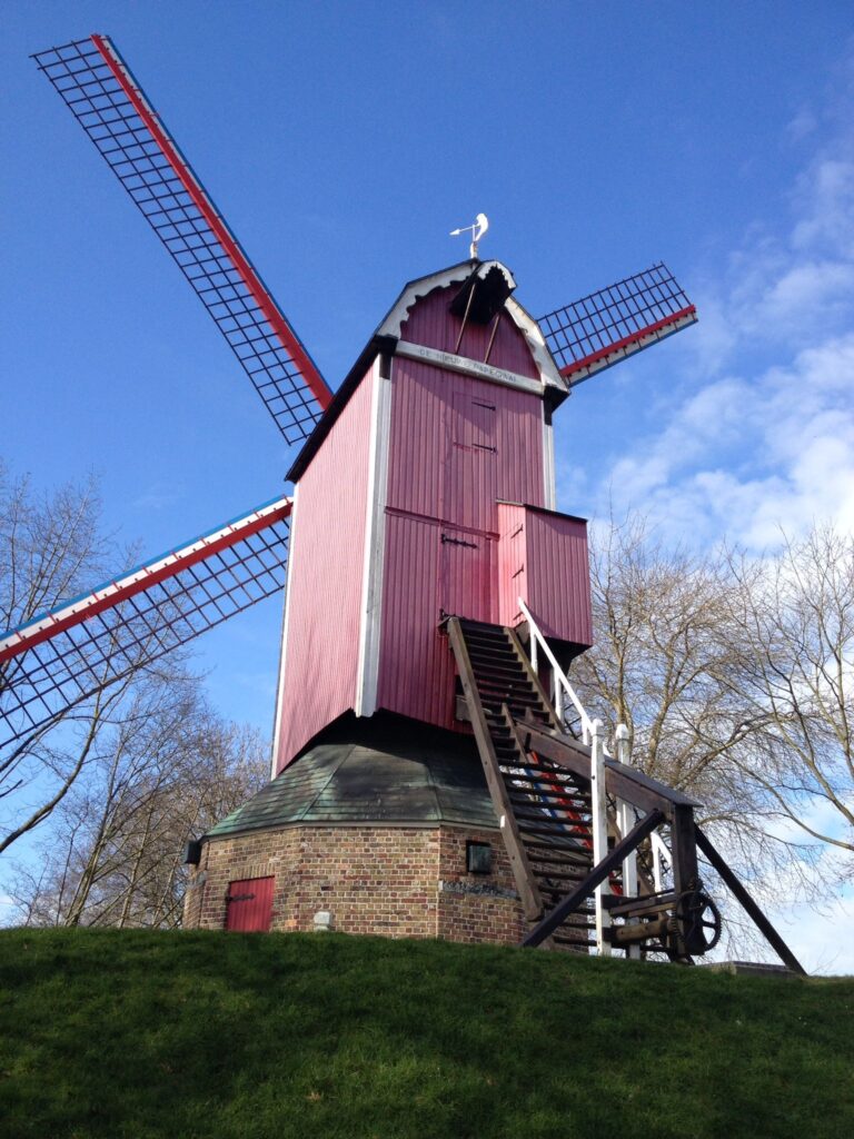 Bruges has four windmills located on the city’s ramparts. Of these, Sint-Janshuismill (Middle) is the oldest, having been built in 1770 – the same year James Cook visited the East coat of Australia. It is also the only one still in its original position.