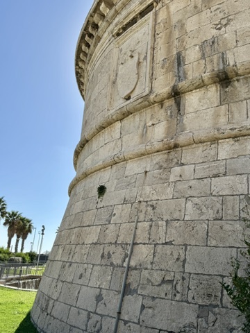 Civitavecchia is Italy’s largest seaport, serving as a gateway to Rome. It is about an hour by train or bus from Rome or Rome Airport. In Roman times, Emperor Trajan established the port, naming it Centumcellae, likely for the “hundred cells” in the harbor walls or his nearby villa. The name ‘Civitavecchia’ means ‘Old City’ and comes from its history of being destroyed by Saracens in 828 AD. Afterwards the residents fled and later returned to their ‘old city’.