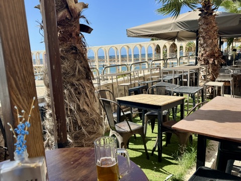 As the sun sets over the Mediterranean, I take the opportunity to enjoy a litre glass of Peroni at Cafe Fida.