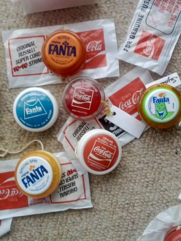In 1973, Australia experienced a “Coca-Cola yo-yo craze,” heavily featuring Russell brand yo-yos, such as the “Super Slimline” model. These yo-yos were often given away as prizes in promotional campaigns, with a popular 1973 version being a black “Russell Super” model that was a prize in various campaigns, including those linked with Coke and Fanta.