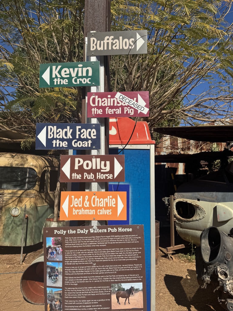 Before departing Daly Waters, I spent some tiem taking a look at Tim’s amazing junk collection. This guy has a serious problem collecting stuff. He also had a sense of humour, e.g. Adding a KFC Sign above the chicken coop. I visited the airfield, which had once been the home of Qantas.