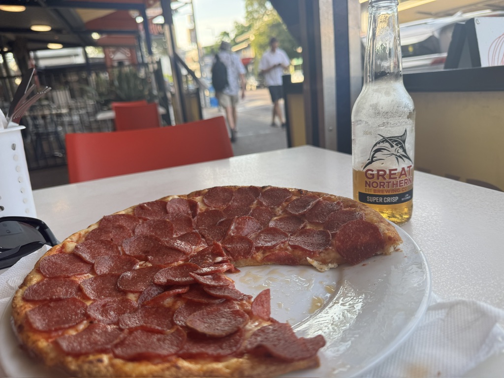 Now this is what I call a pizza. Ever since moving to the US I have often craved the type of pizza I remembered when I lived in Australia. The opposite of some American pizzas where you can struggle to find a single piece of salami/peporoni on each slice. So much so I took to cooking my own pizzas at home, purchasing frozen pizzas and then adding a whole buncg of extra pepperoni, ham, and cheese. On my return to Australia I have struggled to find many of those old-fashioned overloaded pizzas. Especially the really hot (spicy) ones!