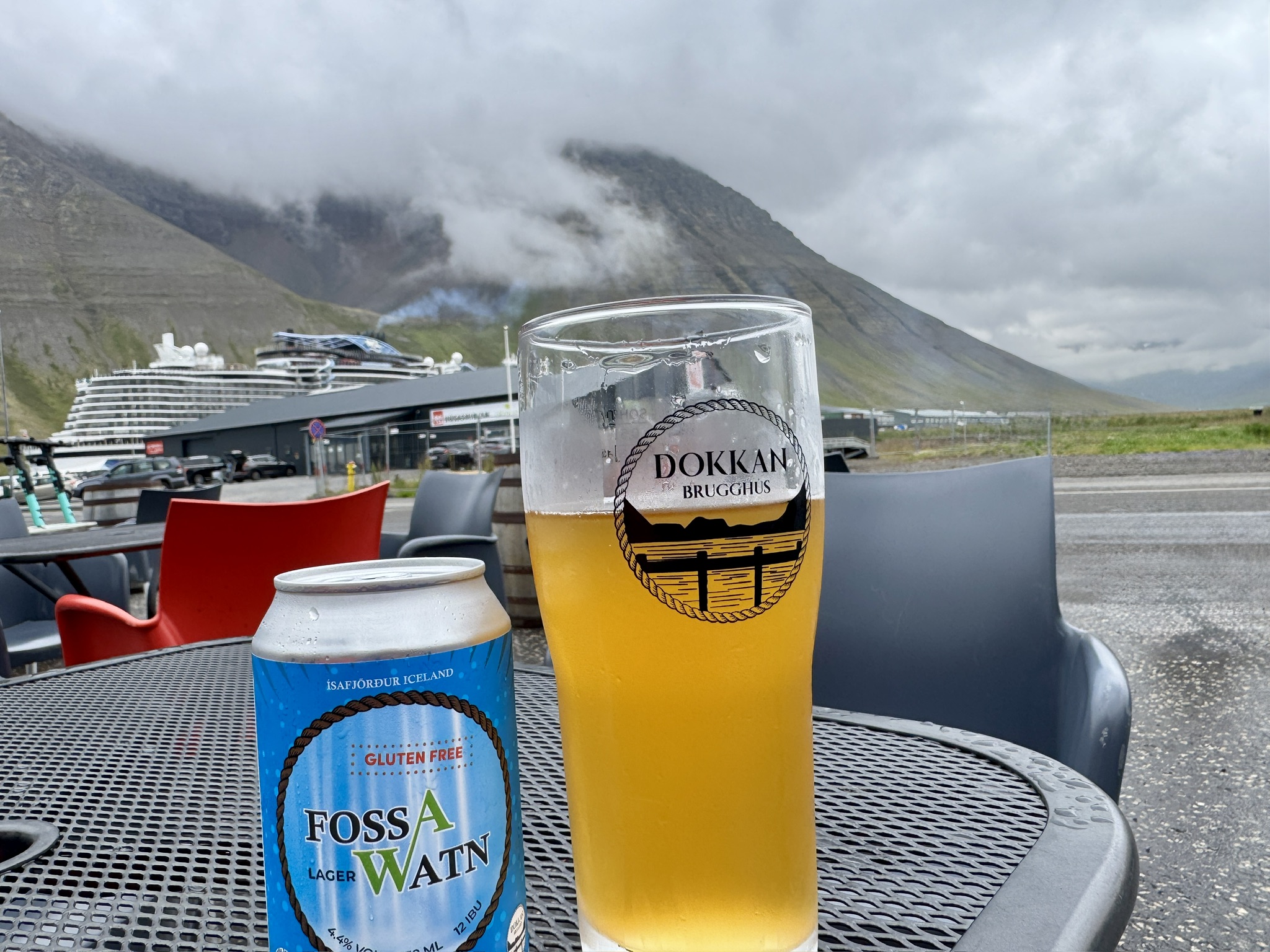 I had two options today. I settled on a view of the fjords from a glass of FossAWatn Lager at the local microbrewery, Dokkan Brugghus.