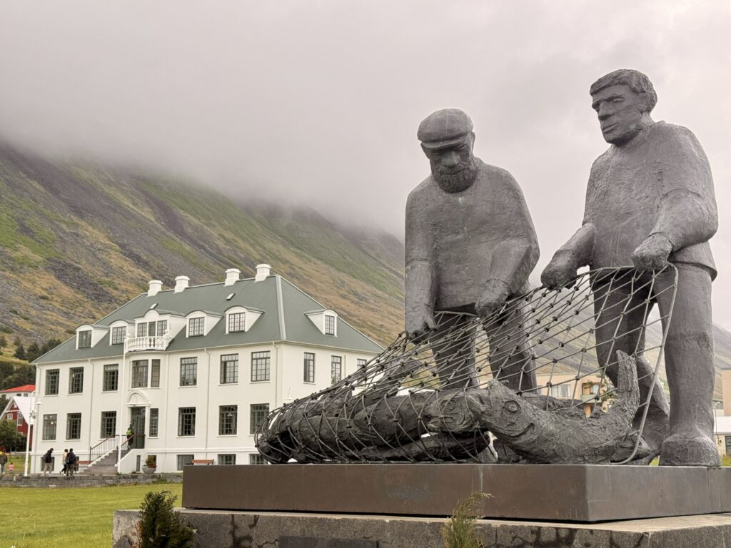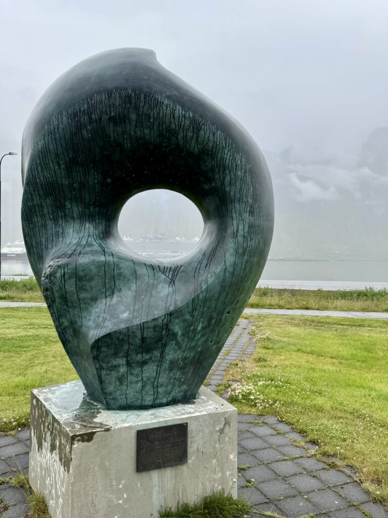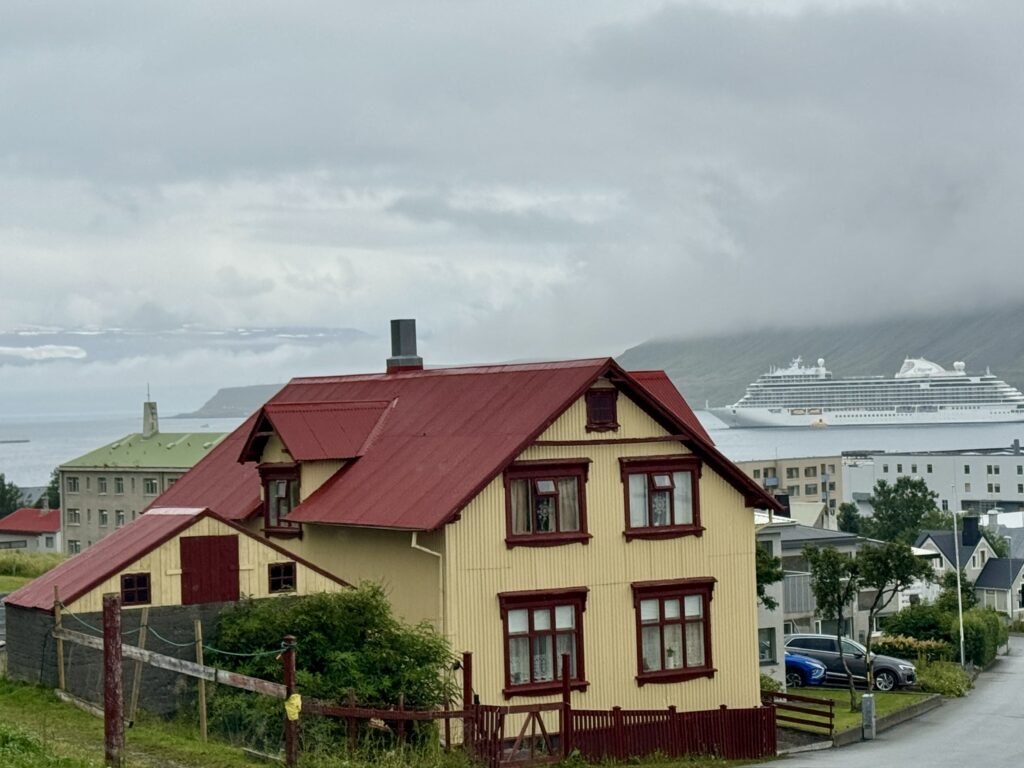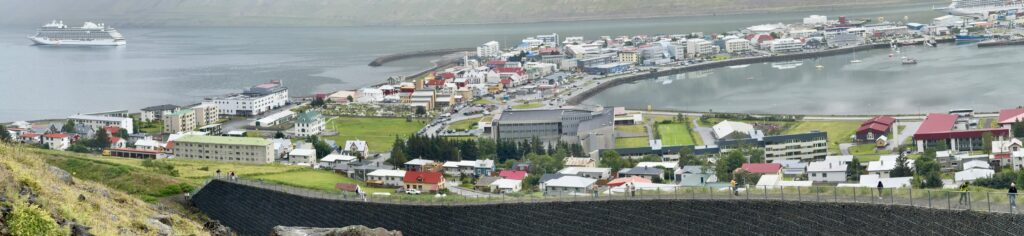 The sixth stop on my 14-day cruise to Norway & Iceland was the very scenic Vestfirðir region. It is locted on a large peninsular that extends out from the northwest corner of Iceland. The jagged coastline in this area, created by glaciers accounts for 50% of Iceland’s total coastline. We had four cruise ships in port today, which demonstrates the importance the tourist industry is now playing in this area. Each one of the cruise ships contains more people that Isafjordor itself. The hottest temperature ever recorded here was 24.8C. It wasn’t today as we reached about 12C.
