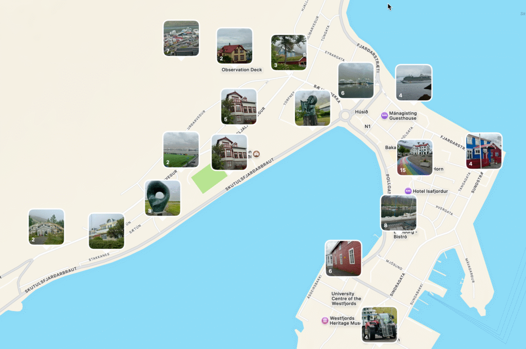 Our ship was anchored the furtherest out of the four and it took around 30-minutes to water taxi to the port. I did some research before heading off and decided on a circular route around the peninsular on which Isafjordur was located.