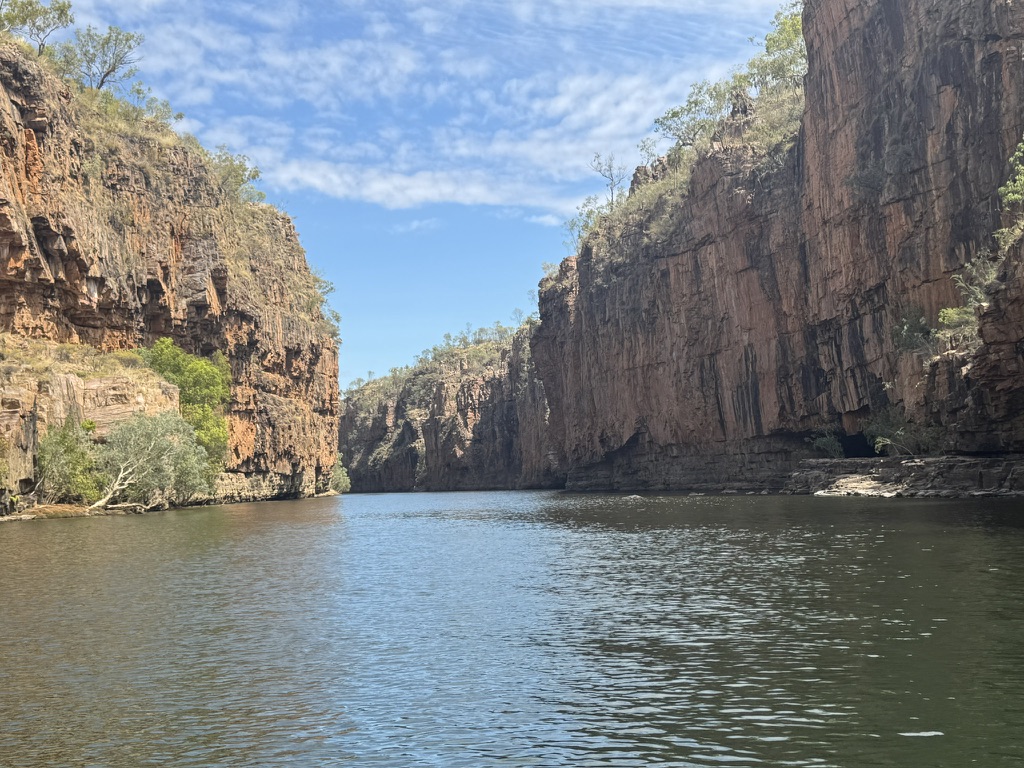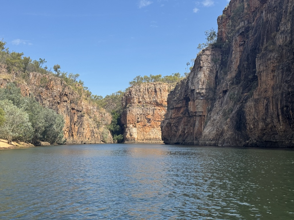 Day two on my seven-day trek through Northern Territory started with a cruise through Nitmiluk National Park (aka Katherine Gorge). The park is the traditional land of the Jawoyn Aboriginal people, who have lived there for thousands of years and continue to be its custodians, co-managing it with the Parks and Wildlife Commission of the Northern Territory. The name “Nitmiluk” (pronounced ‘Nit-me-look’) means “place of the cicada dreaming” in the Jawoyn language.