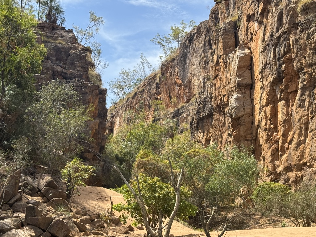 As we set out up the river, the cliff faces quickly soared above us creating a magnificent spectacle. The water level rose quite dramatically during the wet season making one big long river and gorge. At this time of river we would have to stop at various points and walk up to 1km to reach the next party of the river. The tour companies staged a different set of boats in each section of the river. I think what made the gorge so spectacular was knowing that this eco system was located in the middle of a giant desert.