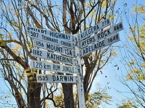 Alice Springs has a lot of character. Its central location makes it a unique city. There was the strong presence of aboriginal culture and art. The harshness of the surrounding desert is perhaps best exemplified by the dry river bed of the Torrens River on which the famous Todd River regatta is held mid August each year. It was a shame I had missed the world’s only dry river boating event by a few days. The remoteness of Alice was reflected by the road signs pointing out how far away the rest of Australia was, and the massive road trains that carry goods to those cities.