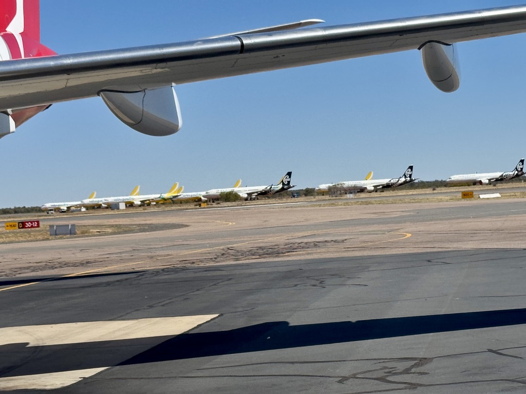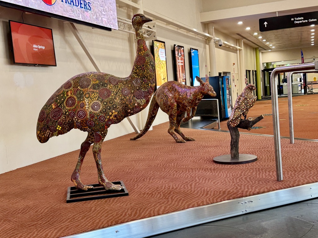 Alice Springs wins the prize for the most interesting baggage carousel, with a kangaroo and emu hovering over the baggage claim area. Given its location, surrounded by desert, the airport was used to store aircraft that were not being used by their owners.