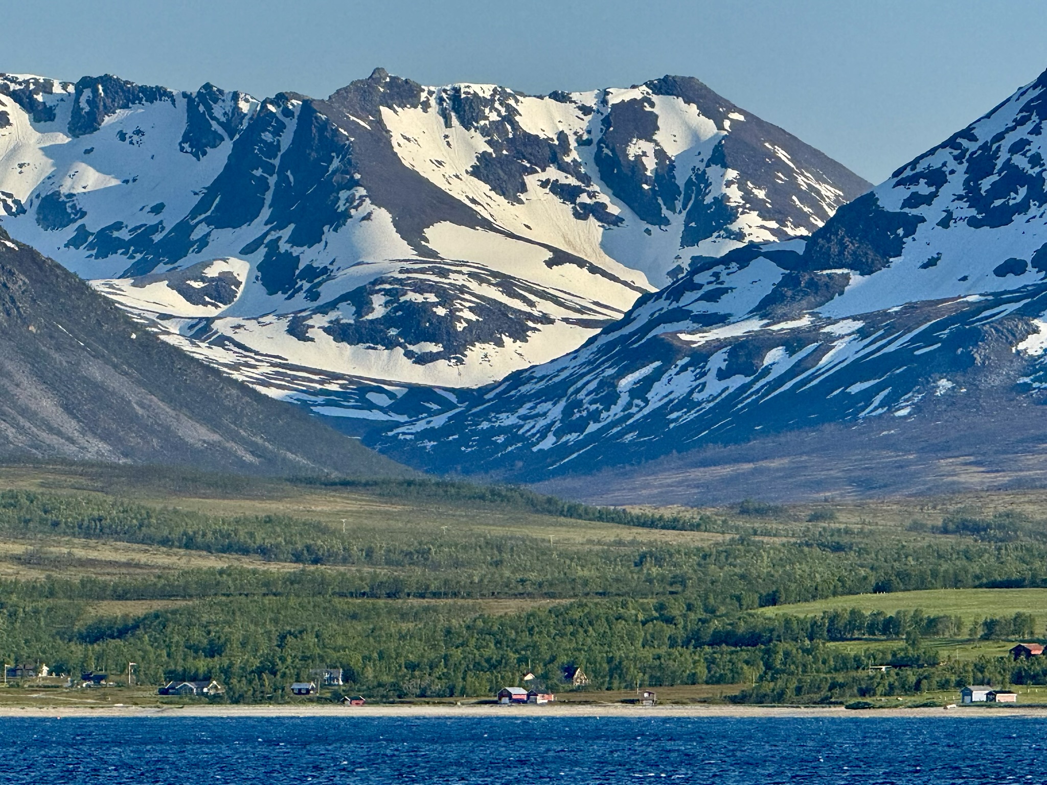 The ports in central and northern Norway features more ice and snow as we encountered colder weather (7C) to accompany the continuous sun.