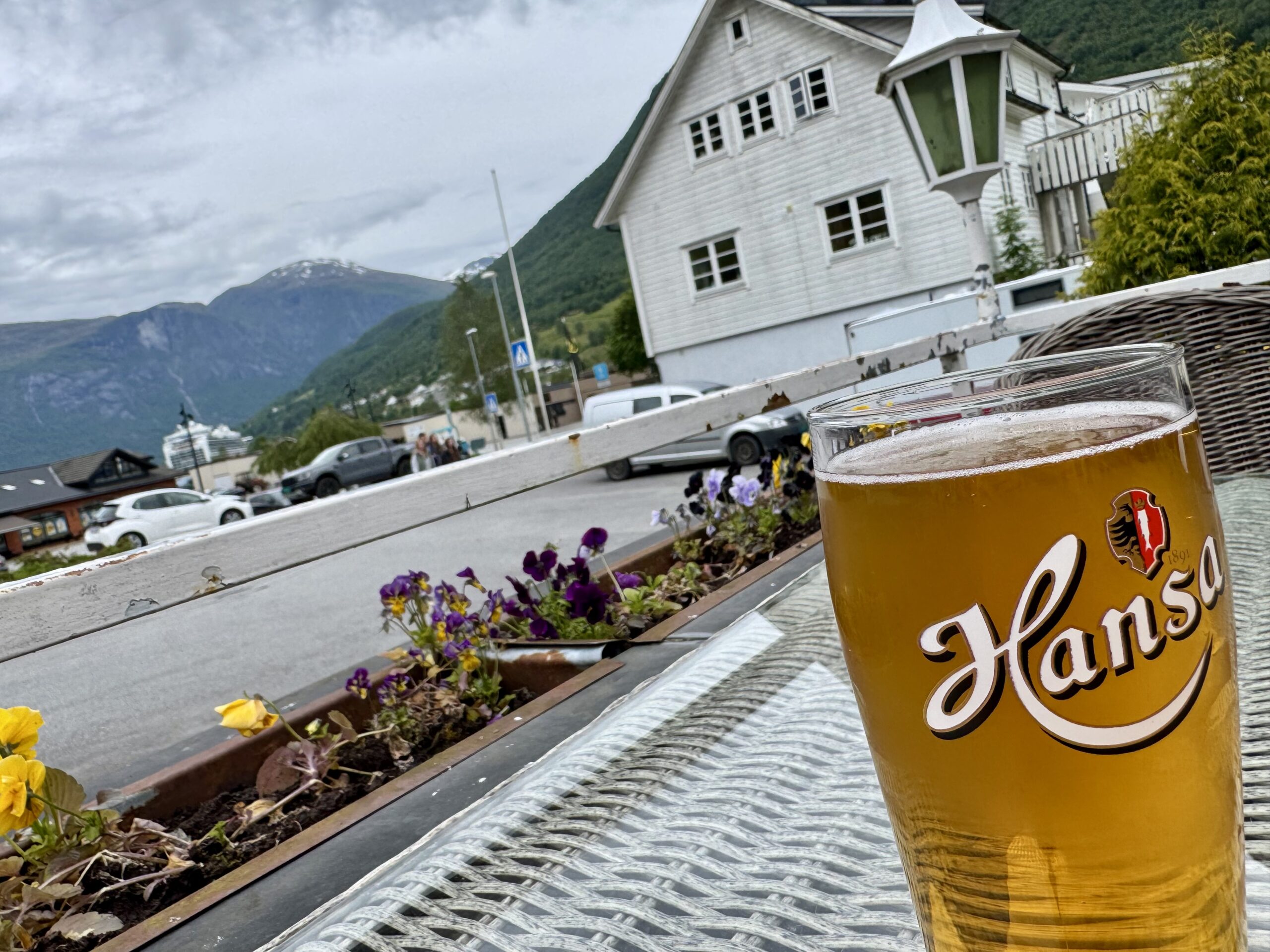 The view from my beer. The Norwegian fjords have me searching for new and different superlatives to describe my view that I haven’t used before. What can I say, the world is filled with so many amazing places. This is one of them.