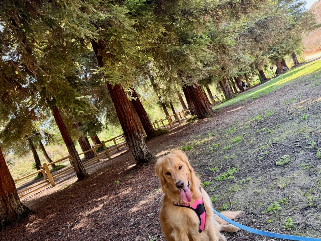 Today’s walk was a circuit around the park. After we parked the car, we passed around the lake before heading down a trail that took us past a dam to the redwood forrest. On our return we found a nice spot to sit and enjoy the views for a while, allow Bailey to fantasize about catching a goose and me to fantasize about that beer I didn’t have.