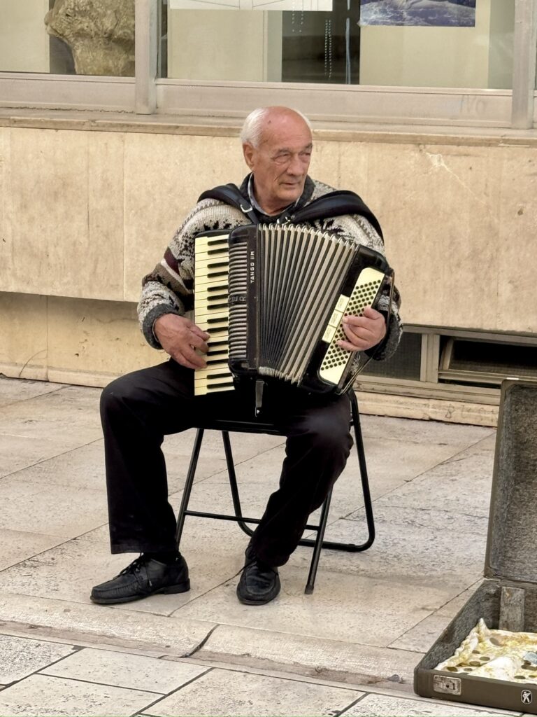 I didn’t have a firm plan for today. The shuttle bus dropped us off next to a sculpture known as ‘The Greeting to the Sun’. Nearby was a sound sculpture known as ‘Sea Organ’. Plastic pipes produced sounds based on the motion of the sea. Unfortunately that doesn’t present well as a photo. There was a nice boardwalk along the side of the water. It was an enjoyable stroll, not too crowded, a sunny day with temperatures in the low 20s, and a nice breeze. Eventually I decided to take the opportunity to enter into the Old Town.